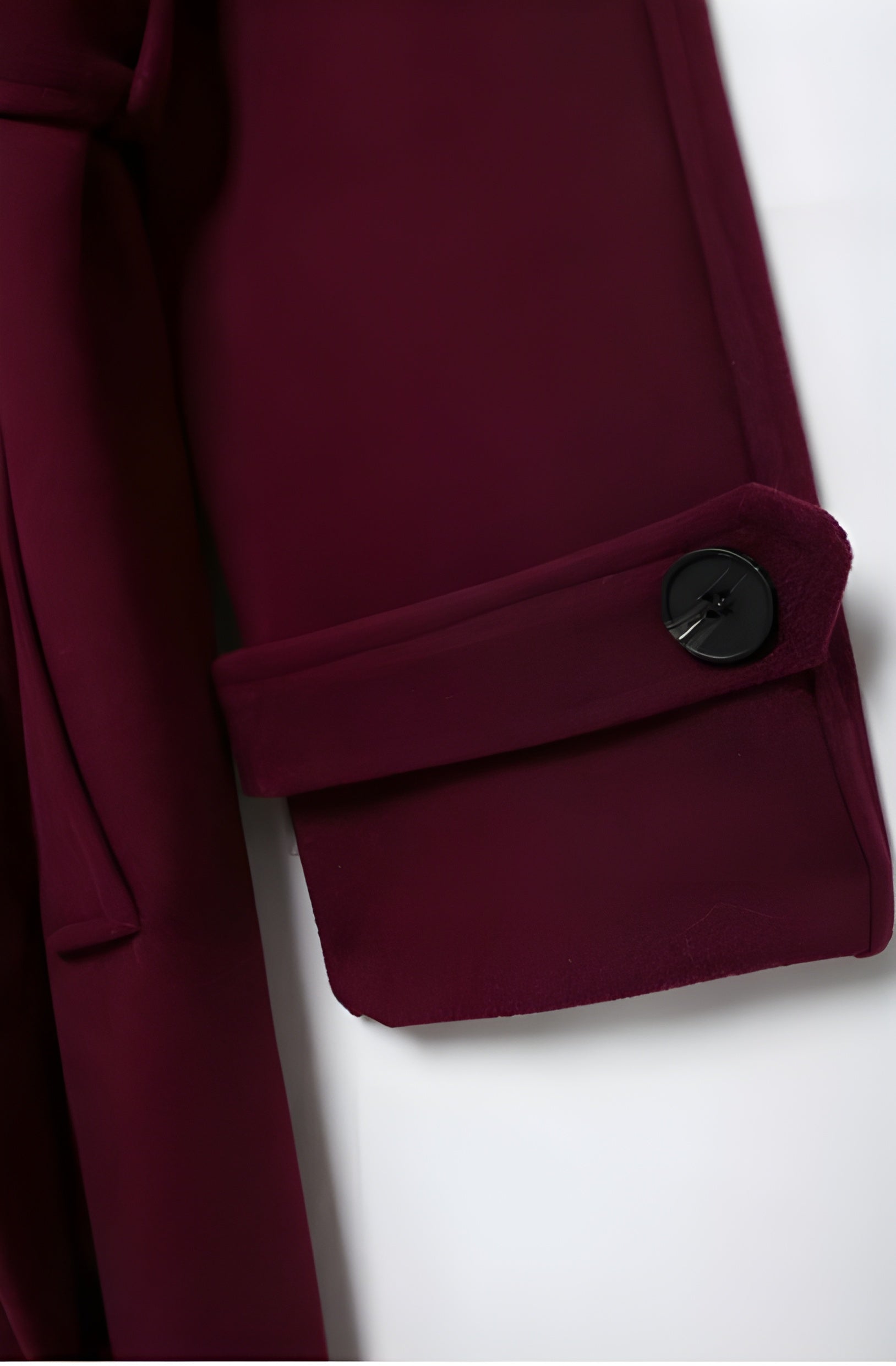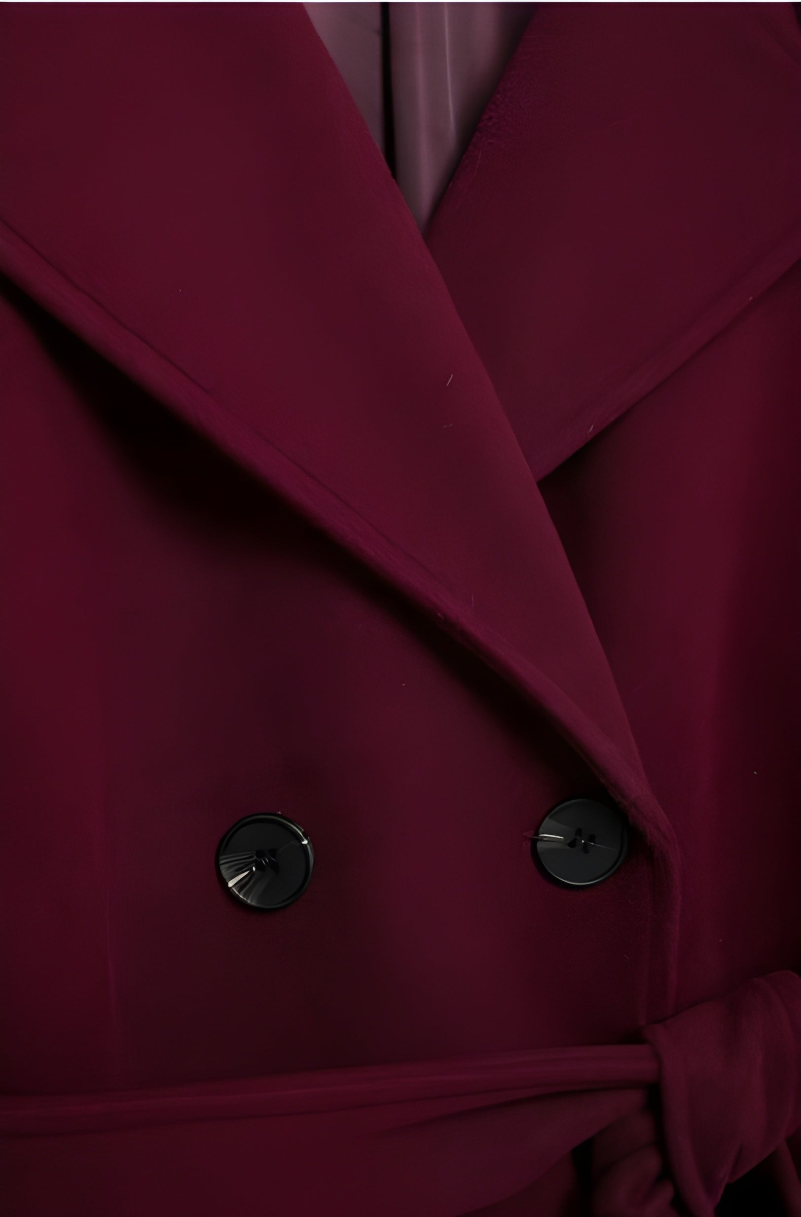 Den djupt rika burgundy färgen är en klassiker som aldrig går ur mode. Denna mångsidiga nyans är lätt att kombinera med olika klädstilar, från chic till casual, vilket gör att du alltid har en elegant look, oavsett tillfälle. Oavsett om du väljer en neutral look med svart eller grått, eller om du kombinerar kappan med andra varma toner, ger burgundy-färgen alltid en elegant touch till din outfit.